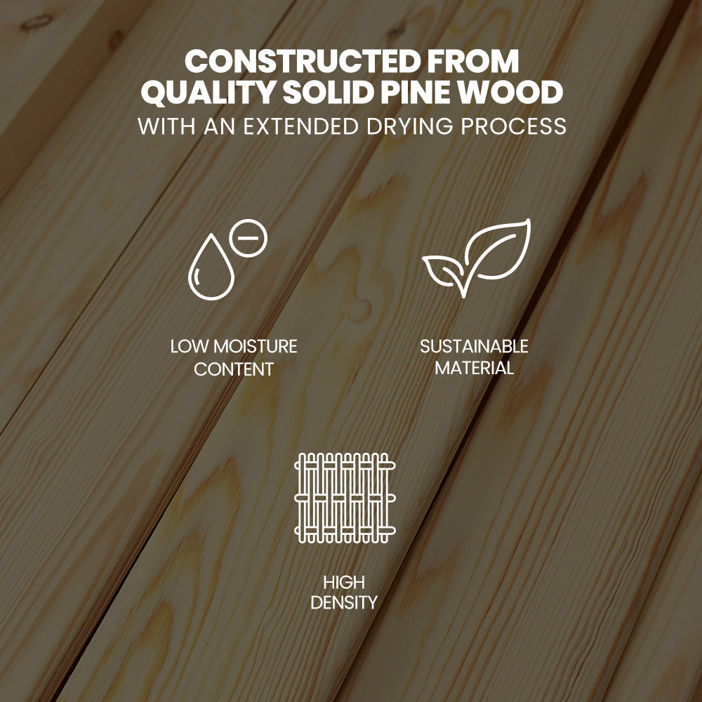 Crafted with solid pine with premium quality slats, it offers an impressive 120kg capacity, ensuring durability and stability. The extended drying process of the frame guarantees long-lasting quality. This Kingston Slumber bed single size frame is eco-friendly, 100% formaldehyde-free and features non-toxic paint.