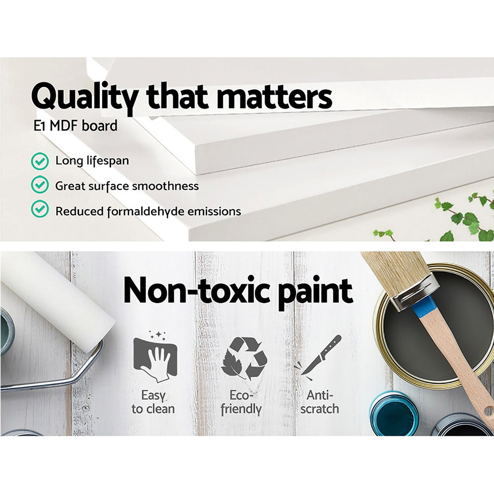 Add a touch of country style to your home with our lovely Storage Cabinet. With its panelled facade and cut-out handles, the rustic cabinet exudes charm and elegance all over. The four deep drawers are interchangeable and provide ample space for practical storage. Crafted from durable E1 MDF board with smooth non-toxic NC lacquer finish, the cabinet is stable and sturdy to withstand years of robust use. Best of all, the classic design and neutral white tone mean that the cabinet will suit any room in your house -- such as the bedroom, living room, kitchen, pantry, bathroom and many more.