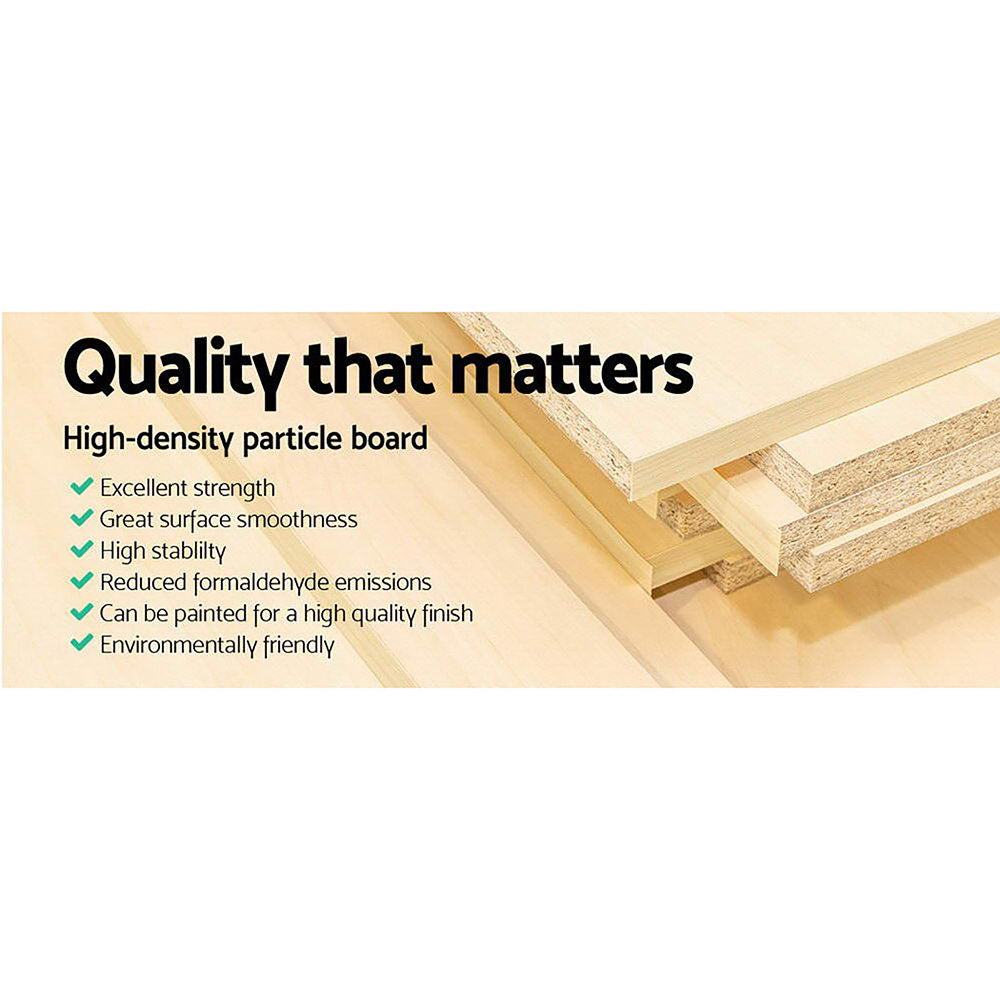 Practical and handsome, our Artiss 6-Drawer Tallboy is perfect for those looking for extra storage space for your home. Contemporary and simply designed, this beauty features a flawless melamine finish with elegant handles that will easily match your home décor. Made with high density particle board and coated metal runners, the tallboy works ever so smoothly with minimum hassle. Not least, it provides plenty of storage space with six generous-sized drawers for all your personal essentials and more.