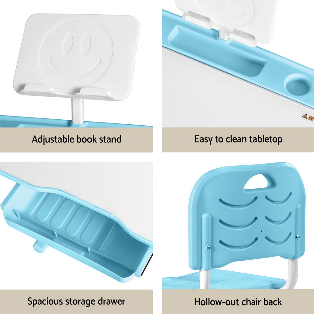 Create a cosy learning corner with the Keezi Kids Table  Chair Set featuring a built-in LED lamp and adjustable design. Perfect for growing children, this study desk adapts to your child's height with smooth adjustments, ensuring ergonomic comfort during homework, crafts, or reading sessions. The built-in LED lamp provides gentle, eye-friendly lighting, while the handy book stand keeps stories and textbooks at the perfect angle. Made from non-toxic, wipe-clean PP material and reinforced with sturdy construction, this set prioritises safety with rounded edges and a robust build. The roomy storage drawer encourages tidiness, and fuss-free assembly means more playtime, less setup time. A practical gift that grows with toddlers and school-aged kids alike!