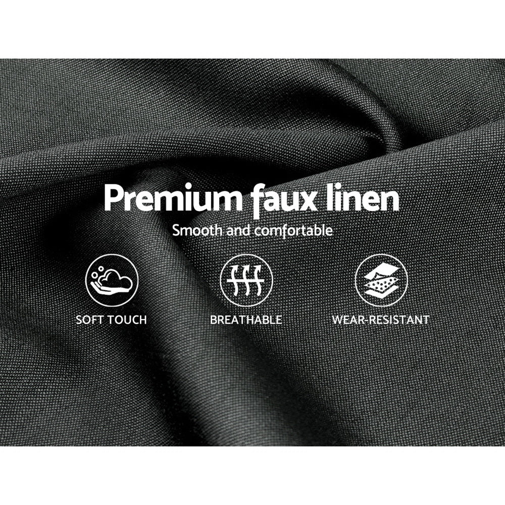 Constructed with a sturdy steel frame that's reinforced with metal bars and heavy-duty connectors, the Mila Bed Frame is also padded with high density foam and upholstered in premium faux linen fabric for a soft and comfortable touch. The Bed Frame features a wooden arched slat base that helps to distribute weight evenly across the frame and a centre support strut to provide added stability to the overall structure.