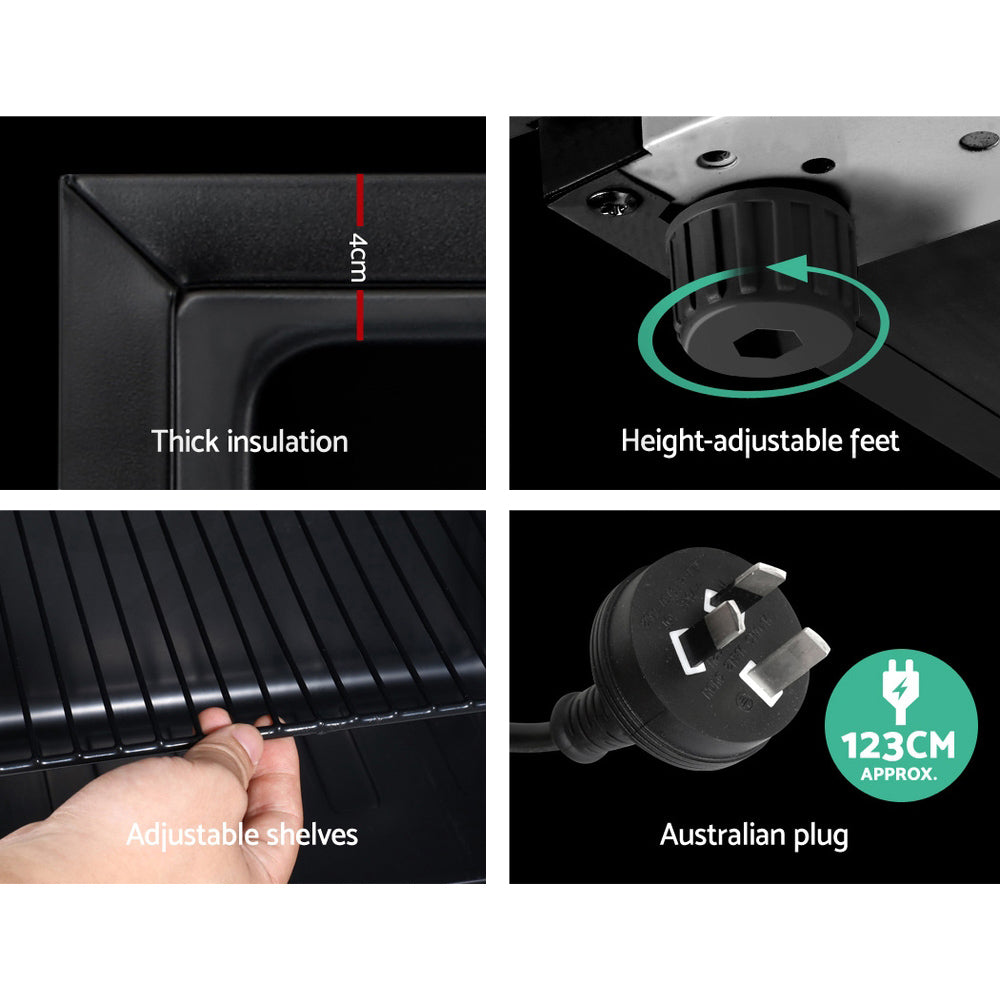 Devanti 70L Bar Fridge Glass Door w/Light Black