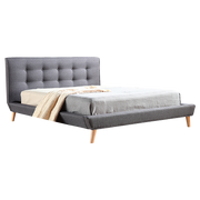 Palermo Linen Fabric Double Bed Frame and Button Tufted Headboard— Grey