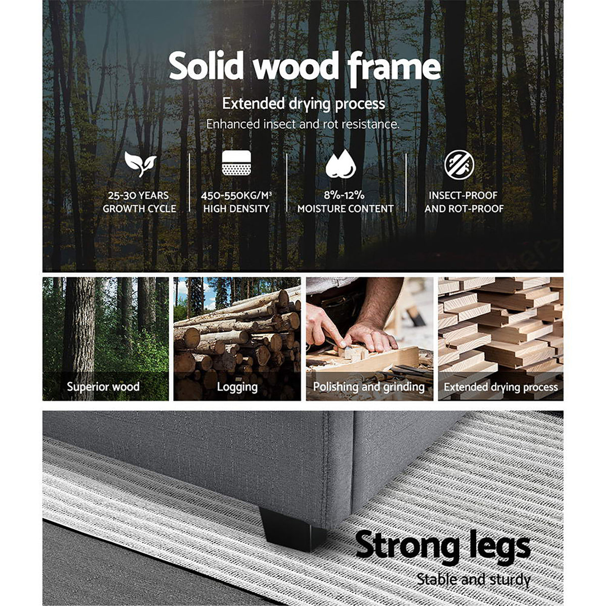 The wooden arched slat base is also designed to flex appropriately so that it can better distribute the weight on it and helps to minimise movement disturbances within the night created when two people are sleeping
